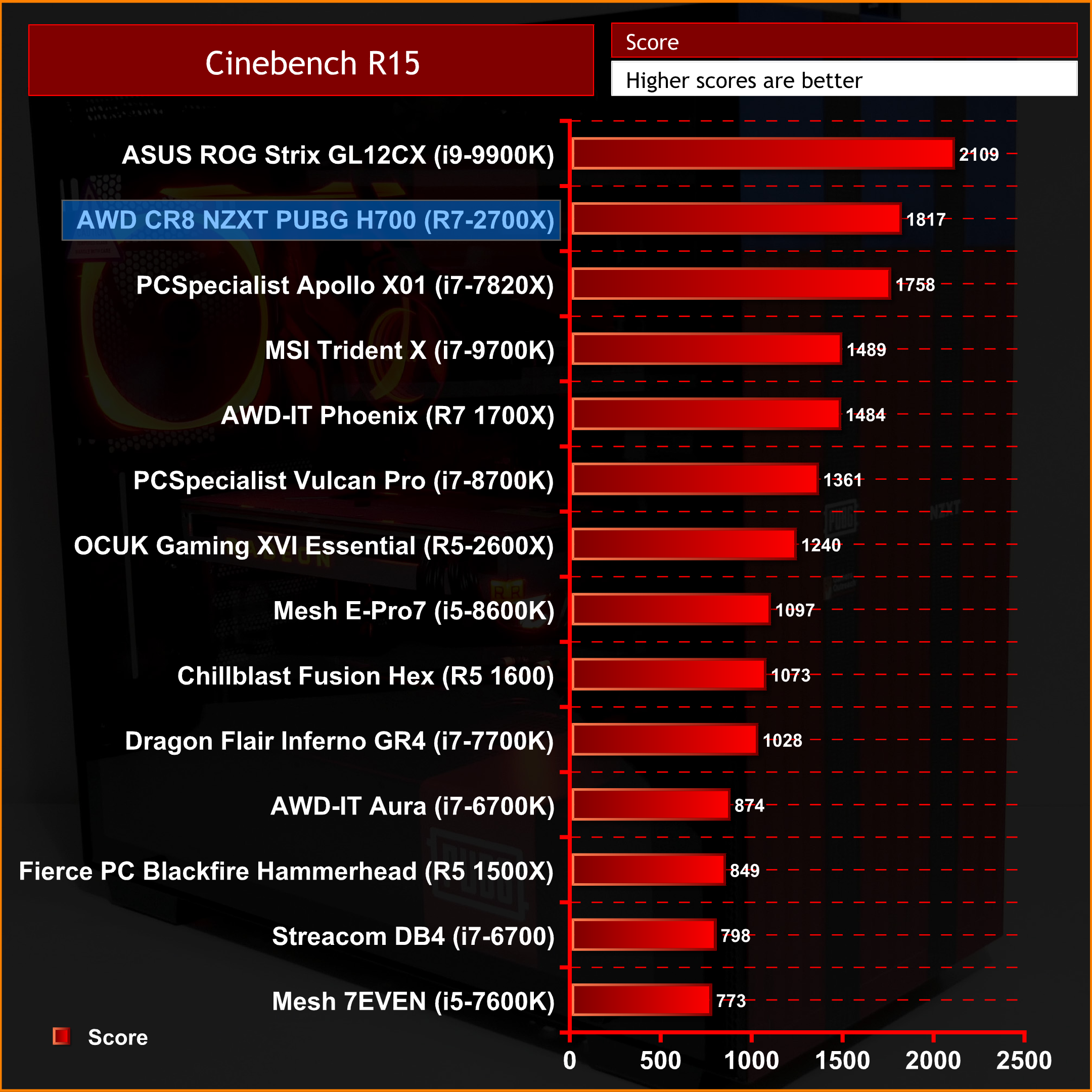 I first tested Cinebench to measure the CPU performance and the score that was achieved with this build sits at 1817, which is 202 points less than the Intel i9-9900K.
