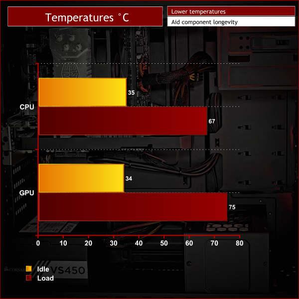 The idle temperatures are a little warmer than usual thanks to the higher ambient temperatures in the UK right now. But 35C and 34C for the CPU and GPU, respectively, are very acceptable. Under load the Hyper 212X does a god job of keeping the CPU below 70C which will help keep this CPU alive and ticking for years to come. The GTX 1060 gets a little warmer but is still well within safe limits and we can't see any issues with cooling in this budget case.