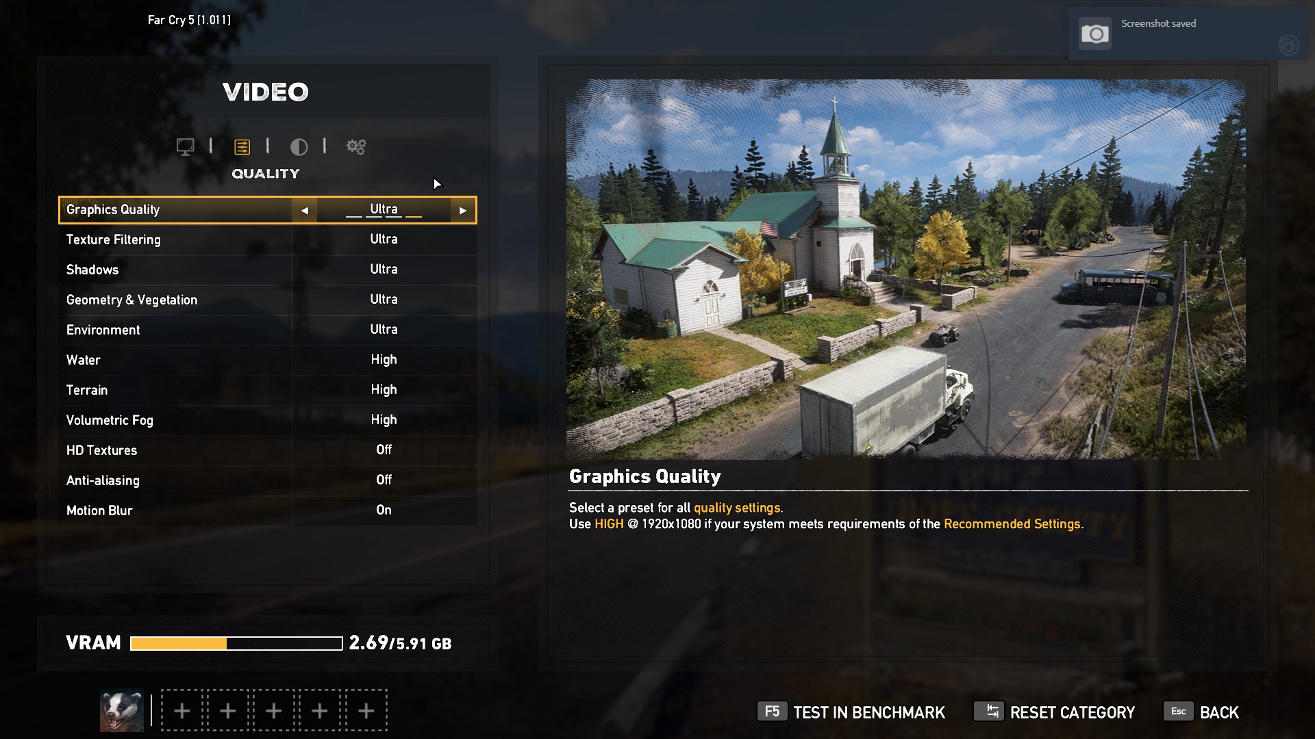 Far Cry 5 is the most recent release we tested. The gigantic open world of Hope County has plenty of beautiful scenery to test how well this laptop performs with a newer game.