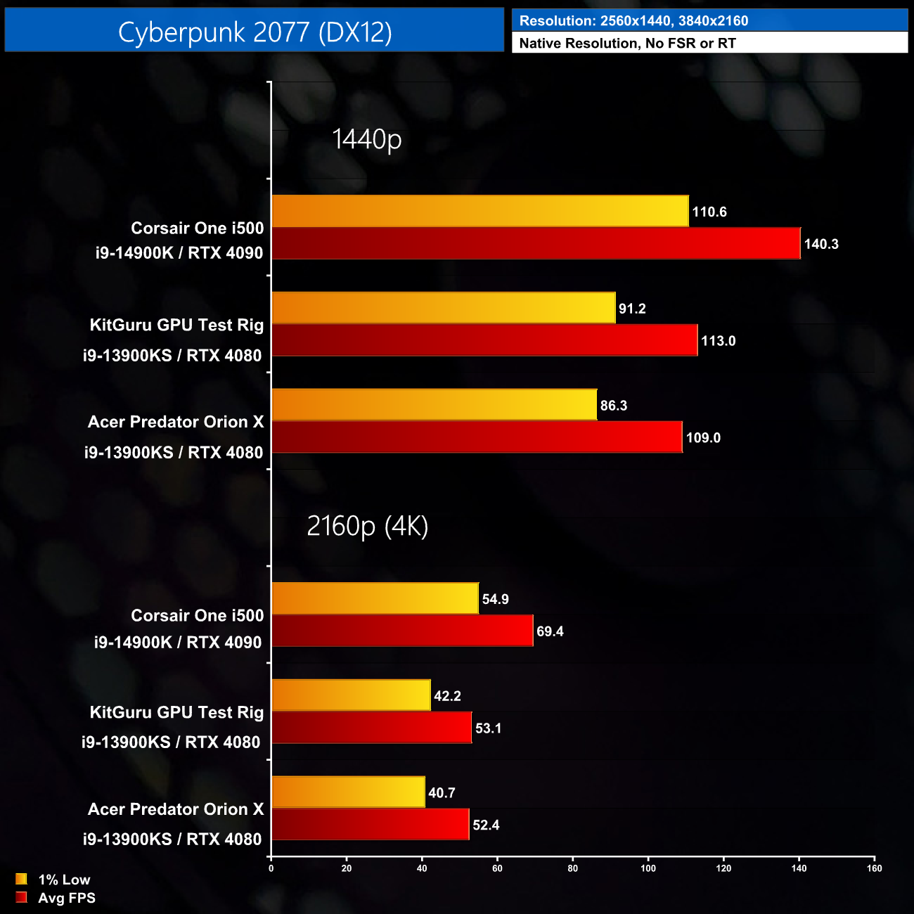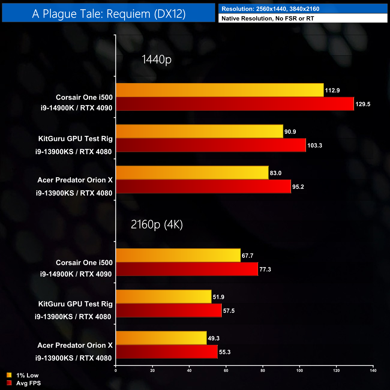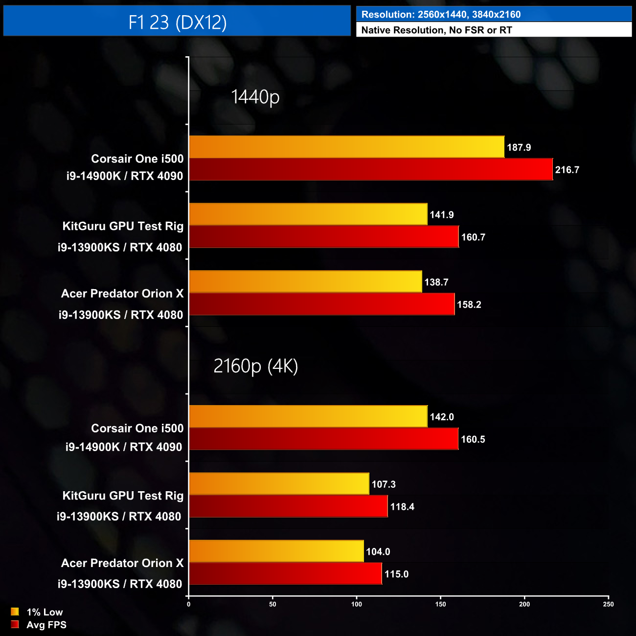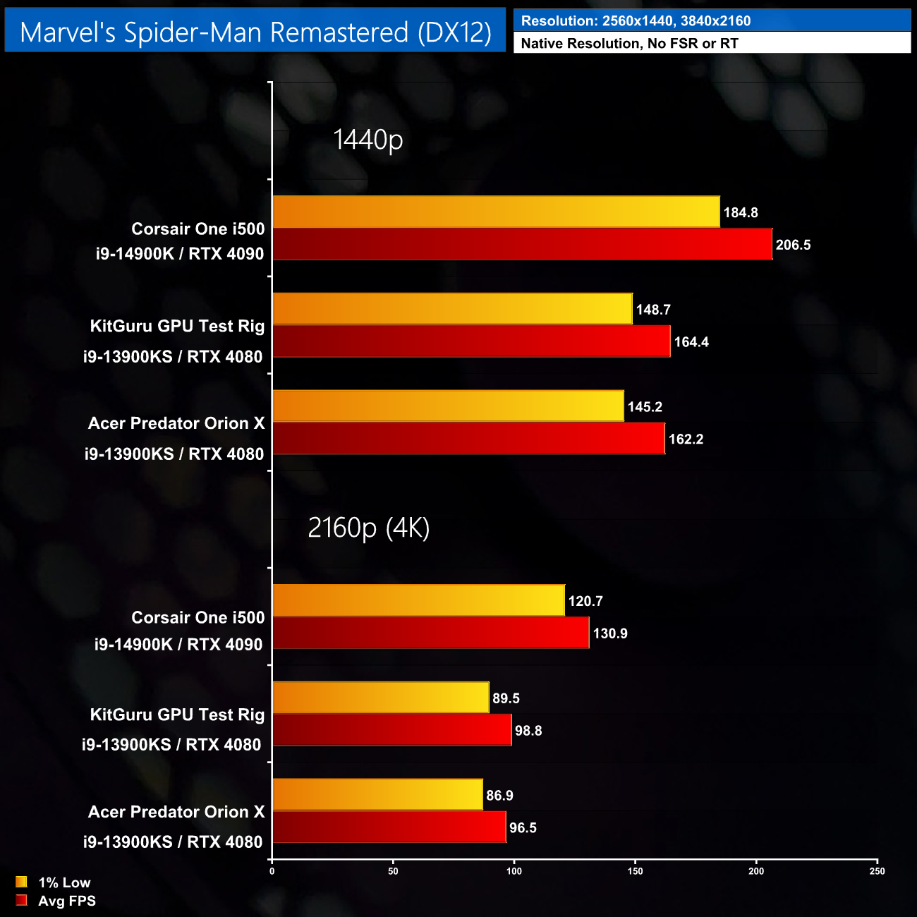 Here we test seven games, all benchmarked at 1440p and 4K resolutions using maximum image quality settings, but with no DLSS/FSR and no ray tracing.