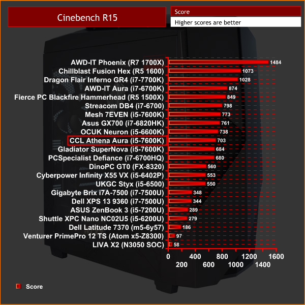 A score of 703 in Cinebench is another middling score. We can see that the Ryzen 5 1600 processor outscores it by a significant margin, and that processor is actually cheaper than this i5.