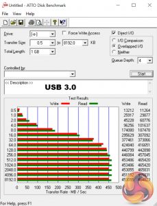 To test the USB 3.0 ports on the Athena Aura, I plugged in an OCZ Trion 150 SSD via a SATA-to-USB 3.0 5Gbps adapter, which uses the ASMedia ASM1053 controller. We reviewed the SSD HERE, finding it delivers good speed at a budget price.