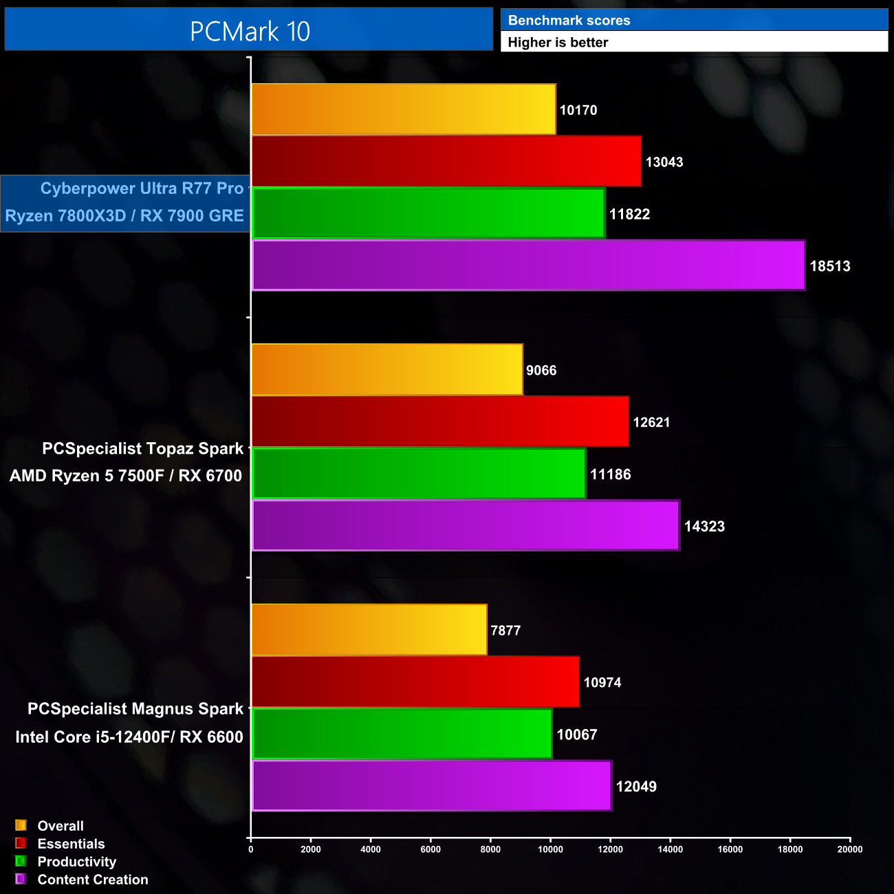 We don't put too much stock onto the PCMark 10 scores but it's a good way to compare the Ultra R77 Pro against your own PC at home. Its content creation score is particularly impressive, hitting over 18K points.