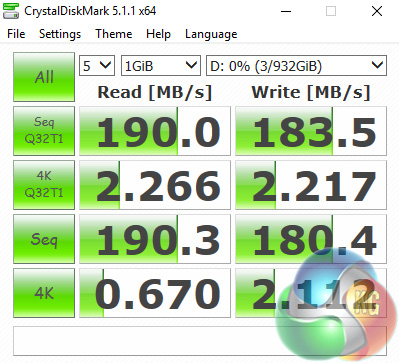 Decent speeds from the WD Blue drive – nothing we have not seen before, but it performs as we would expect from a mechanical hard drive.