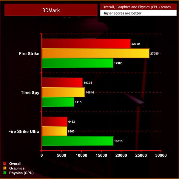 As we would expect, the combination of i7-9700K and RTX 2080 thunders along at quite a pace. In fact, if we compare some benchmarks to the more expensive ASUS ROG Strix GL12CX that I reviewed recently – that system uses the 9900K and RTX 2080 – we can see that moving from a 9900K to a 9700K makes essentially zero difference when it comes to gaming. The Trident X even outperforms the bigger GL12CX as the Ventus RTX 2080 used here is a factory overclocked model, when the Turbo 2080 used with thee ASUS system is clocked at reference speeds.