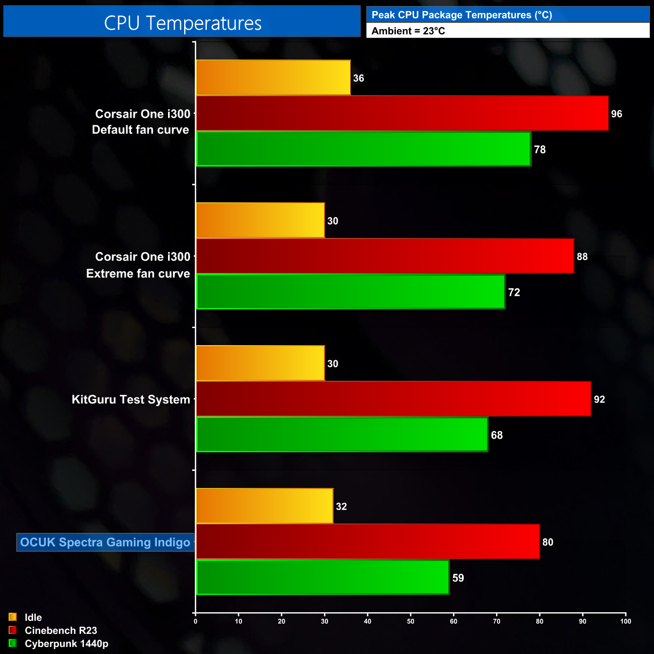 During Cinebench, however, the total system power draw is significantly lower than the KitGuru Test System, as a result of the motherboard being less aggressive with the CPU power delivery for the Indigo.