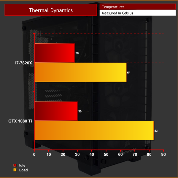 As you can see, the Skylake-X and GTX 1080 Ti combo makes for a very quick PC. Users get the benefit of 8 fast cores when it comes to computational workloads, while Skylake-X's superior IPC (when compared to Ryzen) coupled with Nvidia's flagship GPU means gaming – even at 4K – is handled just fine.