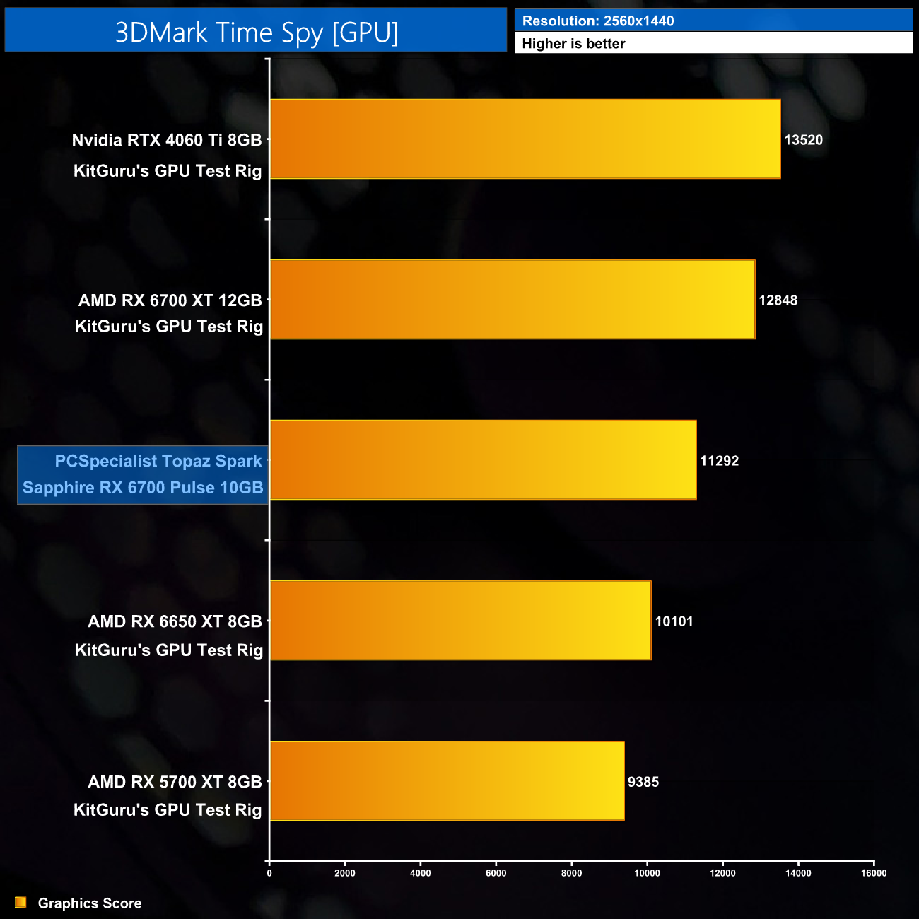 As for the GPU and 3DMark Time Spy, the RX 6700 is about 1500 points below the RX 6700 XT, but it's comfortably faster than the RX 6650 XT and even further ahead of the RX 5700 XT, so it looks like a suitable option in this £999 PC.