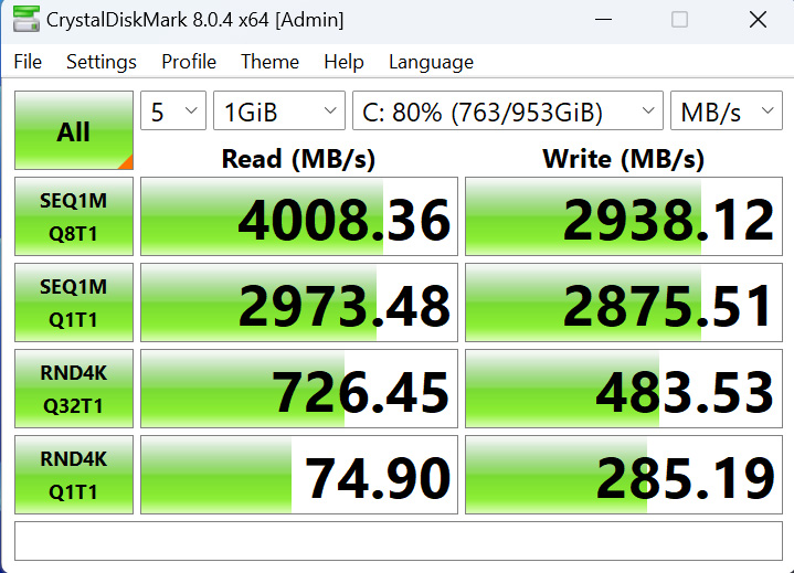The final component to look at is the SSD, and by modern standards it's not the fastest – we're talking reads of 4GB/s and writes below 3GB/s. It'll be more than adequate for gaming, but considering we're now in the age of Gen5 SSDs, this is probably the most obvious corner that's been cut to hit the price-point.