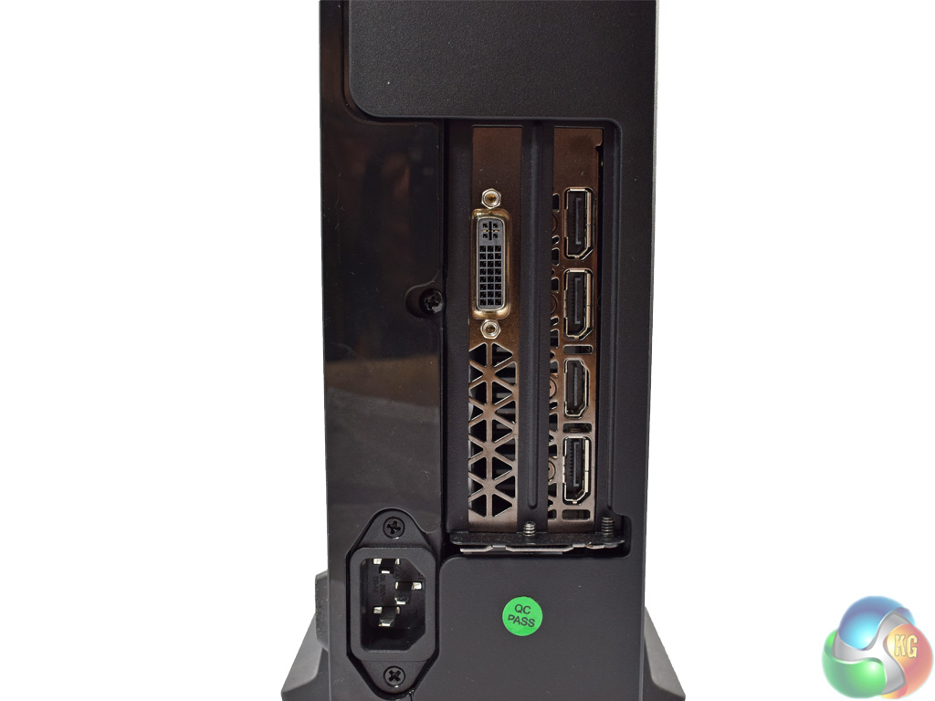 The motherboard has a limited array of ports, but this is to be expected from a budget mini-ITX board. The graphics card (GTX 960) has the standard array of 3x DisplayPorts, 1x HDMI and 1x DVI connector.