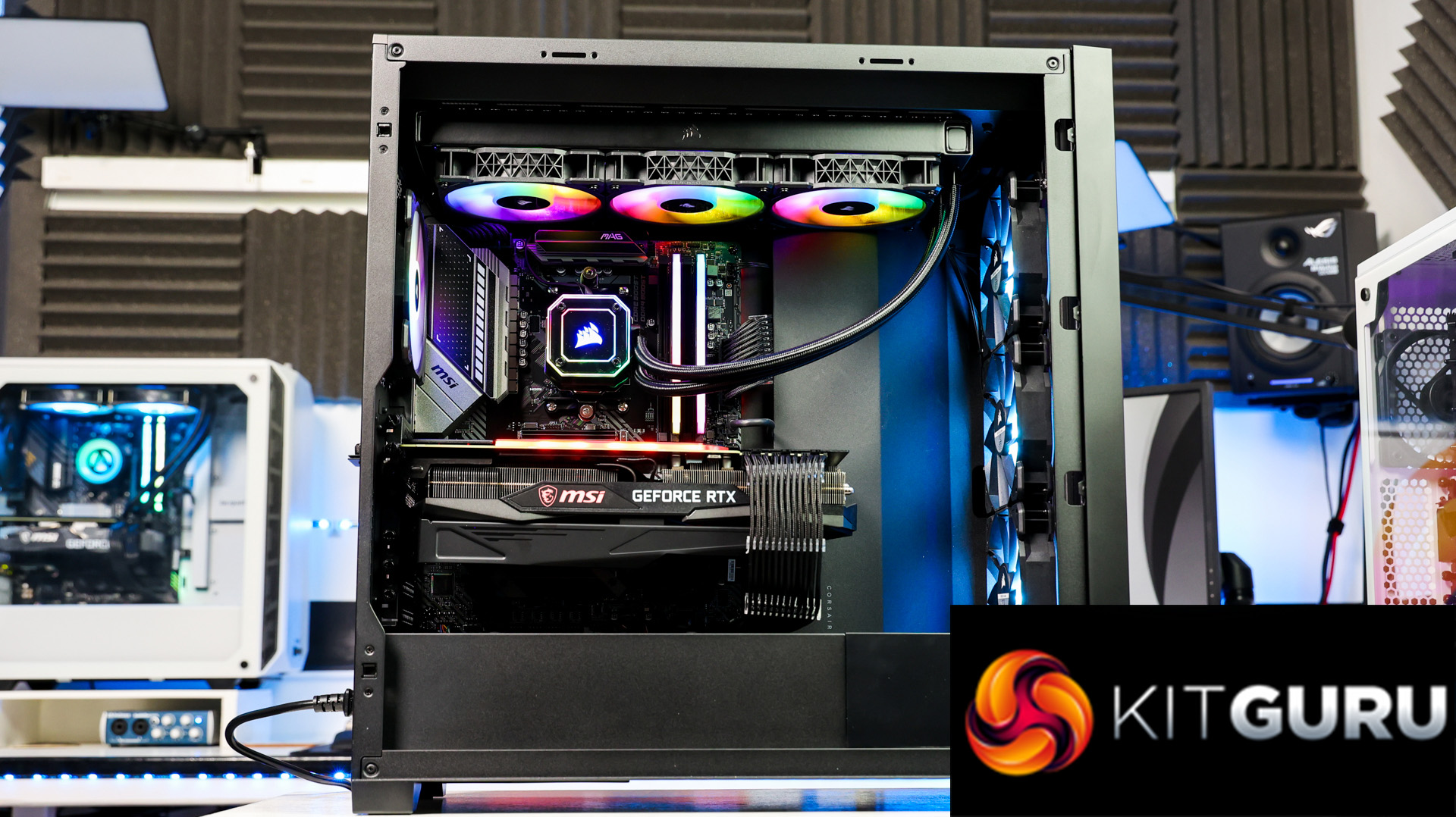 Starting with the PC itself, Box is using the Corsair 5000X case, and it looks stylish with smoked black tempered glass all-round, which can easily be removed on the front and top to get to dust filters. There’s plenty of large gaps around the glass for airflow too along with some nice front IO; USB 3.1 type-C, 2x USB 3.0 and a combo audio jack.