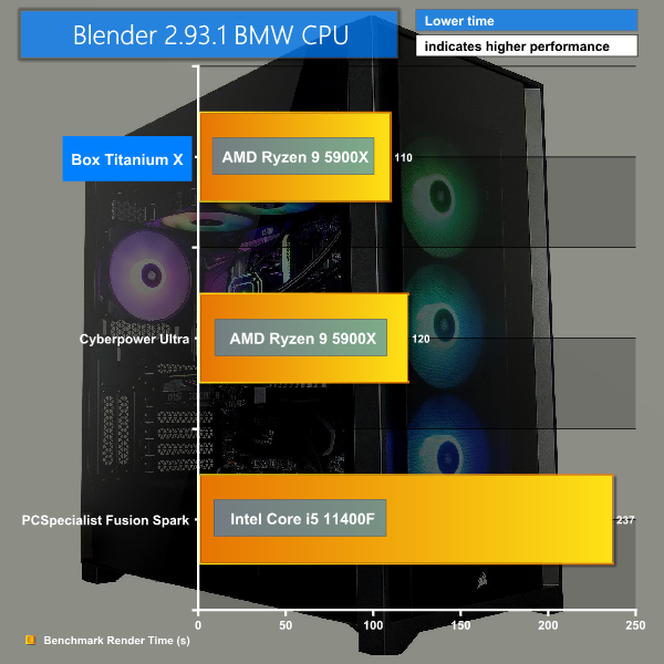 PC Mark 10 shows how well the system performs at a variety of tasks and where it excels, scoring very well across the board but really excelling in the Digital Content Creation tests. Time taken to render our BMW CPU test with Blender 2.93.1 was super-fast at just 110 seconds, or 1 minute 50 seconds.
