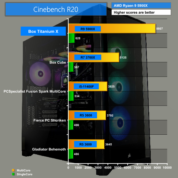 Cinebench R20 scored highly with 8807 during multi-core tests and 628 in single core.