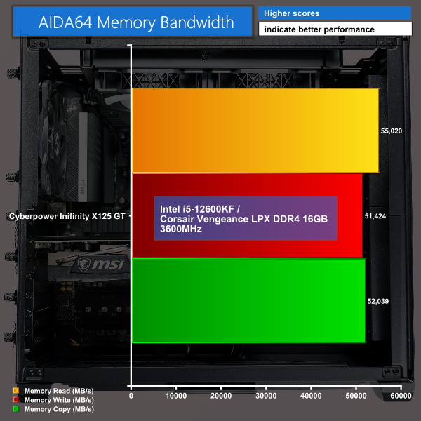 To test our 16GB 3600MHz RAM we put it to the test within AIDA64 where it scored very well and consistently within all three benchmarks here.