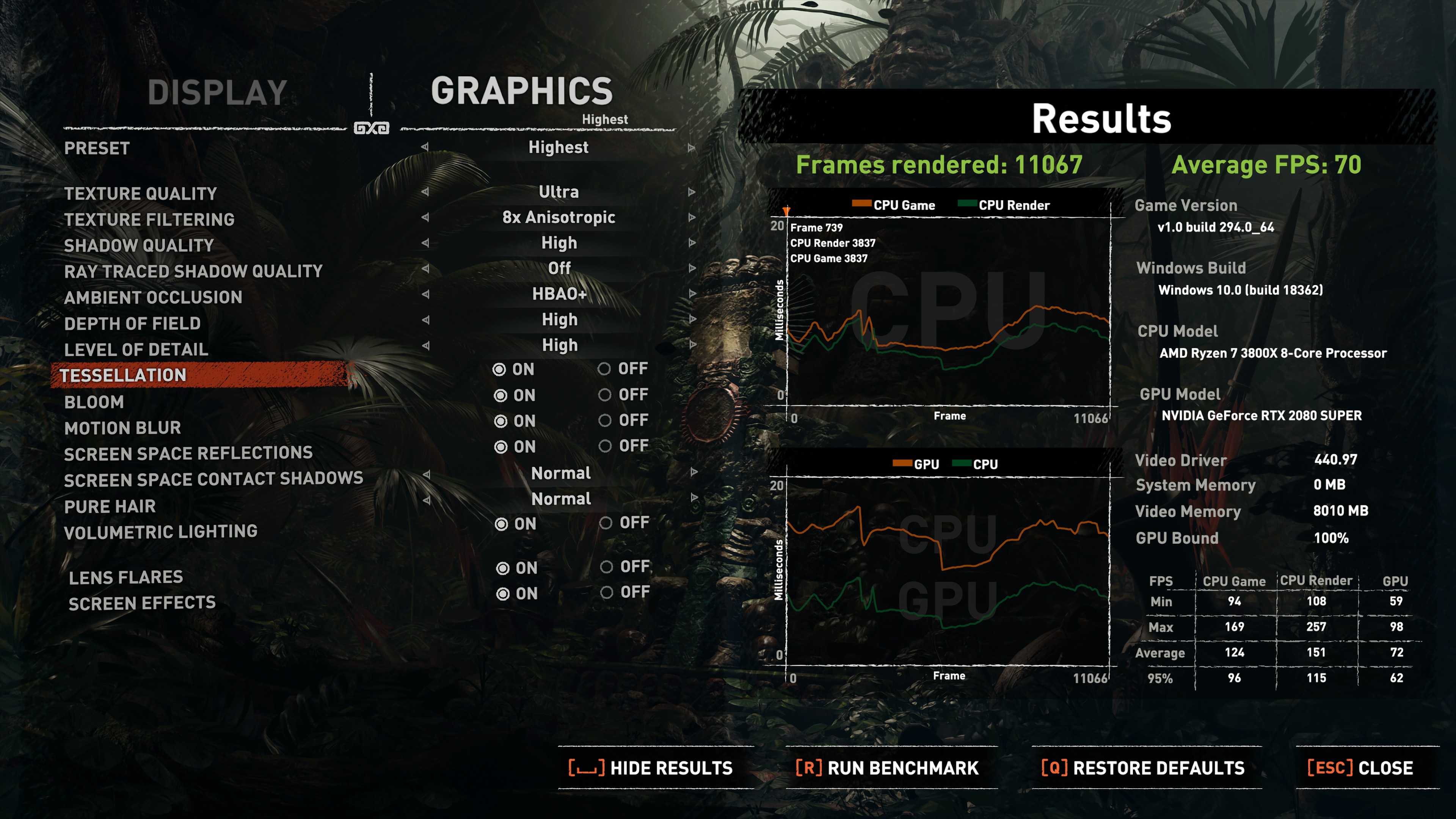 Because the Dragon Army One is such a high end PC I didn't want to mess around with lower graphical settings and instead opted to switch up the resolutions to provide results for different gaming monitor preferences. This PC can easily run all of the tester games on Ultra settings without skipping a beat, which is great for jaw dropping visuals, but thankfully I didn't see too much of a hit to framerates either.