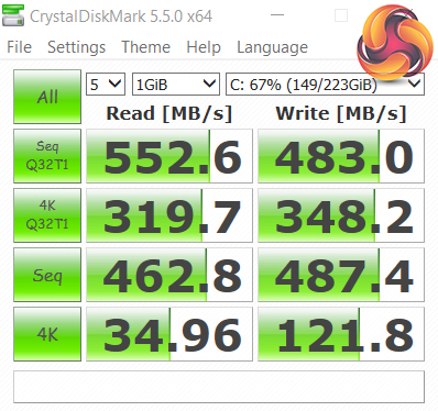 Both the primary Corsair Force LE200 240GB Solid State Drive and the secondary 2TB Seagate Hard Drive have been tested with CrystalDiskMark and ATTO to get a decent idea of read and write speeds that the Infinity X66 can push out alongside other performance characteristics.