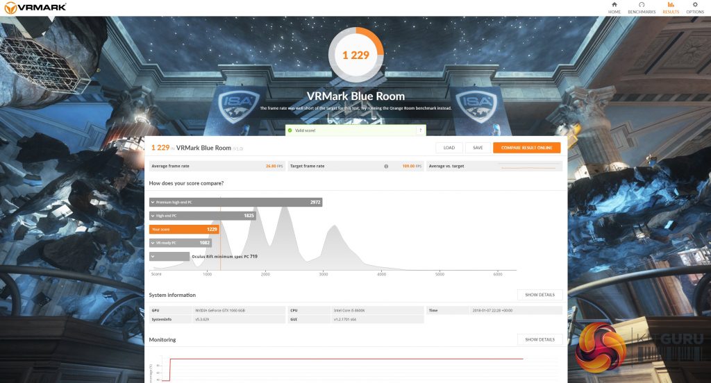 VRMark's Orange Room is the standard test, with the results echoing that of the SteamVR Performance Test. The Cyberpower Infinity X66 GTX is definitely a VR ready system, however, while the system can run the platform relatively smoothly, it will struggle with more demanding settings.