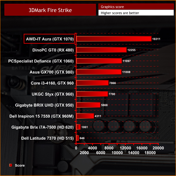In Fire Strike, the GTX 1070 is another 6000 points ahead of the RX 480, while it is over 8000 points ahead of the Maxwell-based GTX 980. This crushing performance takes it to the top of the chart.