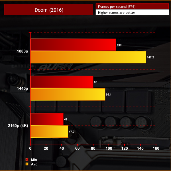 Great frame rates across the board in Doom (2016). 4K frame rates do dip into the 40s, though many would still consider that very playable.