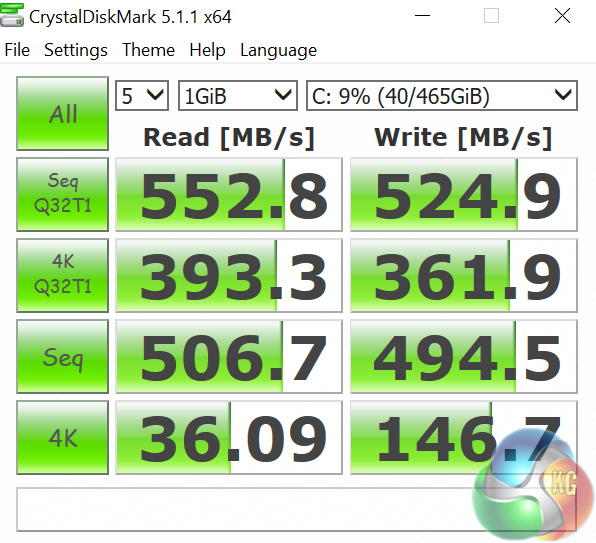 Here we test the Aura's storage performance, using CrystalDiskMark 5.1.1 and ATTO Disk Benchmark 2.47