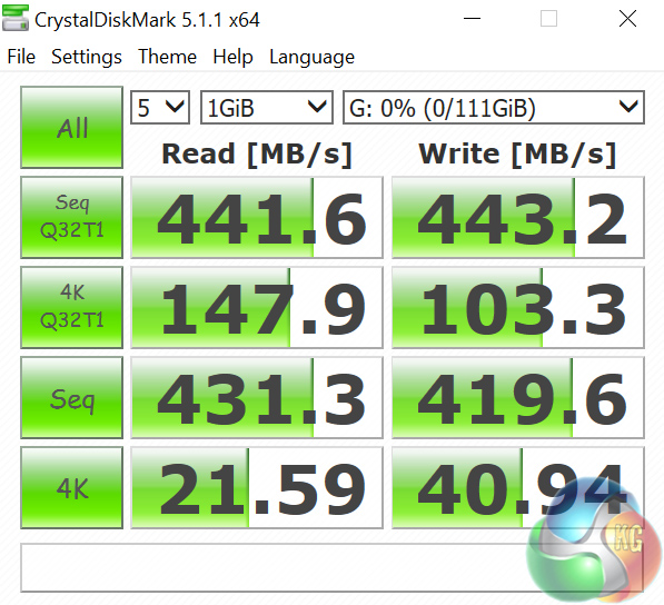 Most importantly, it is capable of saturating the USB 3.0 bus, allowing us to test the speeds the USB 3.0 ports deliver. To test this, I ran both CrystalDiskMark and ATTO Disk Benchmark on the Trion 150 drive.