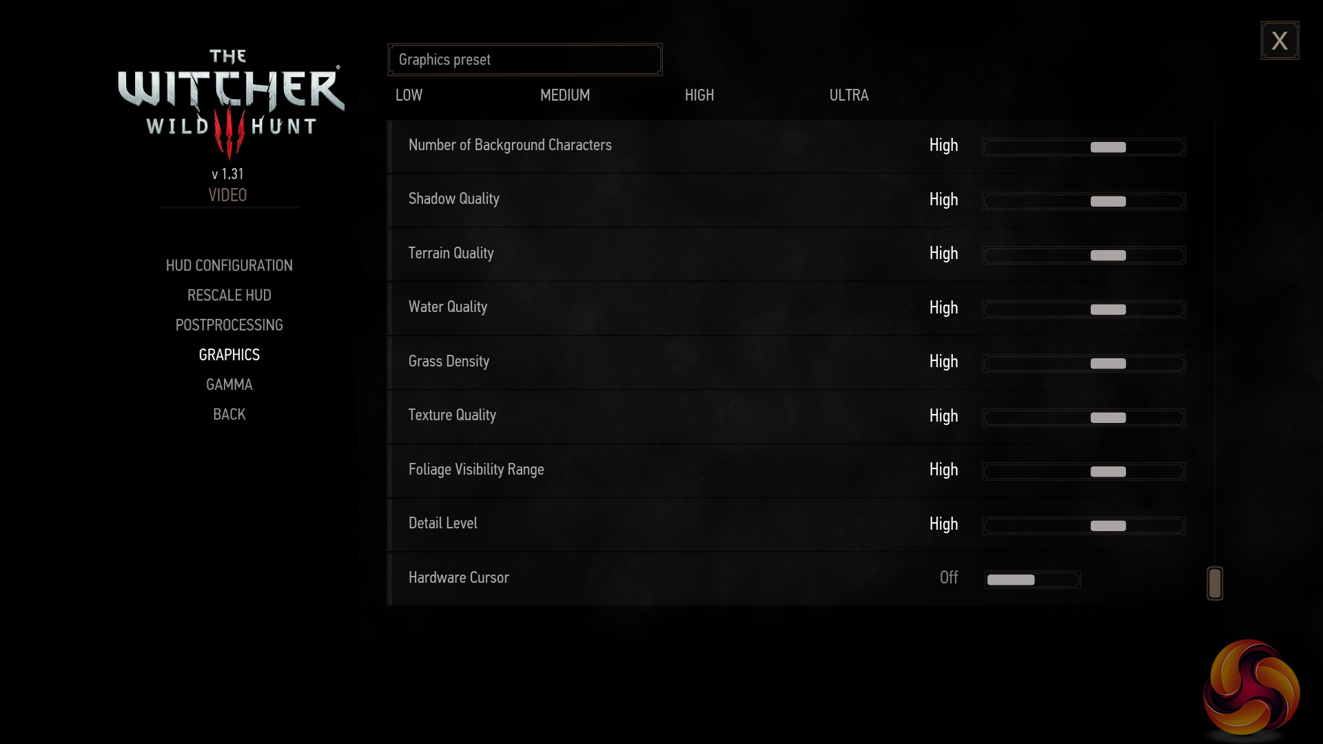 We test using the ‘high’ preset. Given The Witcher 3 does not have its own in-built benchmark, I tested near the beginning of the game with Geralt riding through White Orchard on his horse, before dismounting and carrying on on-foot. I benchmarked 3 closely-matched runs and then took the average figures from those runs to present here.