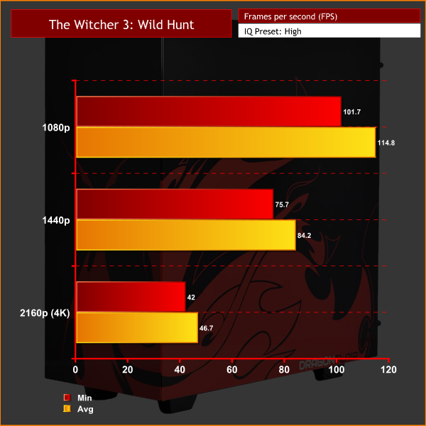 The Inferno does very well with The Witcher 3. At 1080p and 1440p it delivers above 60 FPS at all times, while it never dips below 40 FPS at 4K.
