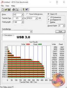 Most importantly, it is capable of saturating the USB 3.0 bus, allowing us to test the speeds the USB 3.0 ports deliver. To test this, I ran both CrystalDiskMark and ATTO Disk Benchmark on the Trion 150 drive.