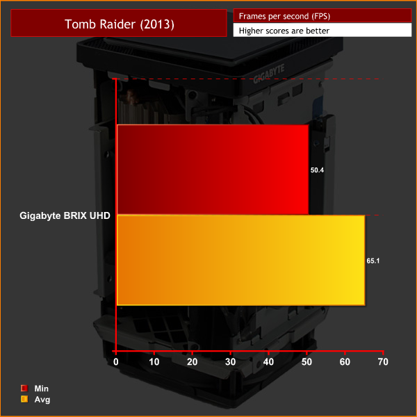However, on this page I want to explore what it would take to game successfully at 4K using the BRIX UHD. To do that, I tested Tomb Raider (2013) and Grid Autosport – neither of which are hugely demanding games. I also dropped the image quality settings down to ‘low' in both games. Here are the results: