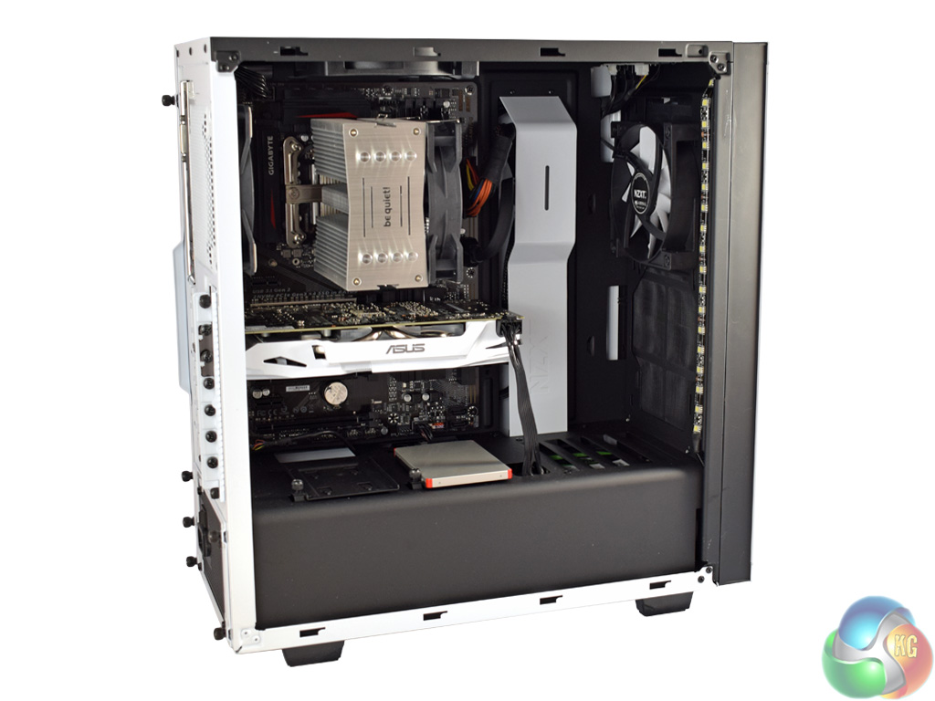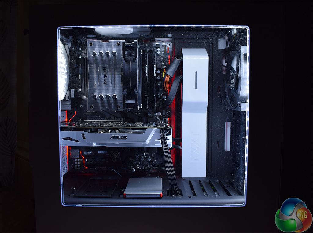 Lastly, here we get a look at the system when it is powered on. Gladiator have included two 30cm white LED strips which do a great job of illuminating the components. There is also some red lighting coming from the motherboard which adds some colour once the system is switched on.