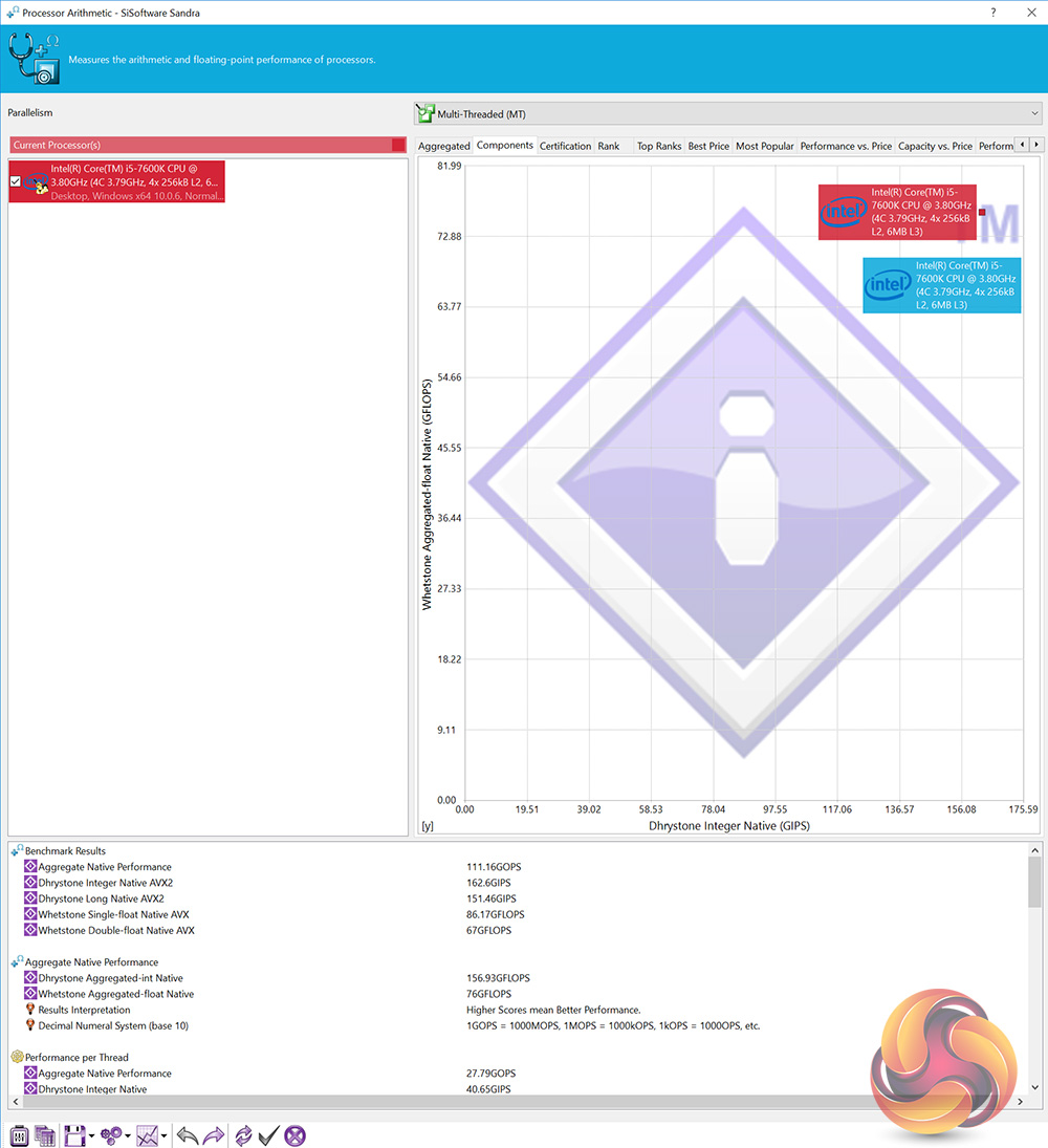 Thanks to the strong 4.7GHz overclock on the CPU, the i5-7600K moves into second-place in the CPU arithmetic test.