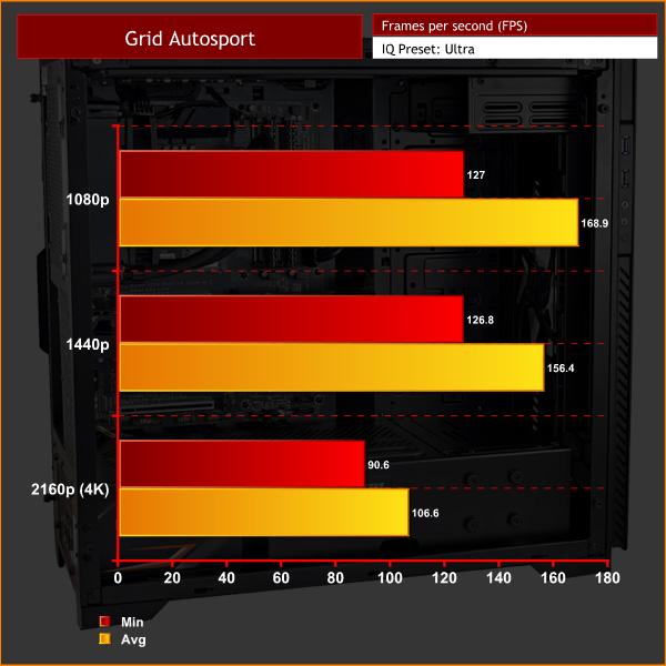 Though it is now getting on in age, I still include Grid Autosport in my benchmark suite as it is a good indication of how well a system performs using a less demanding game engine.