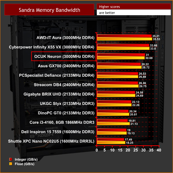 A good start for the Neuron – both scores are towards the top of their respective chart. In the Arithmetic test, the solid overclock helps the i5-6600K, while the memory bandwidth results are high thanks to the 3000MHz RAM used.