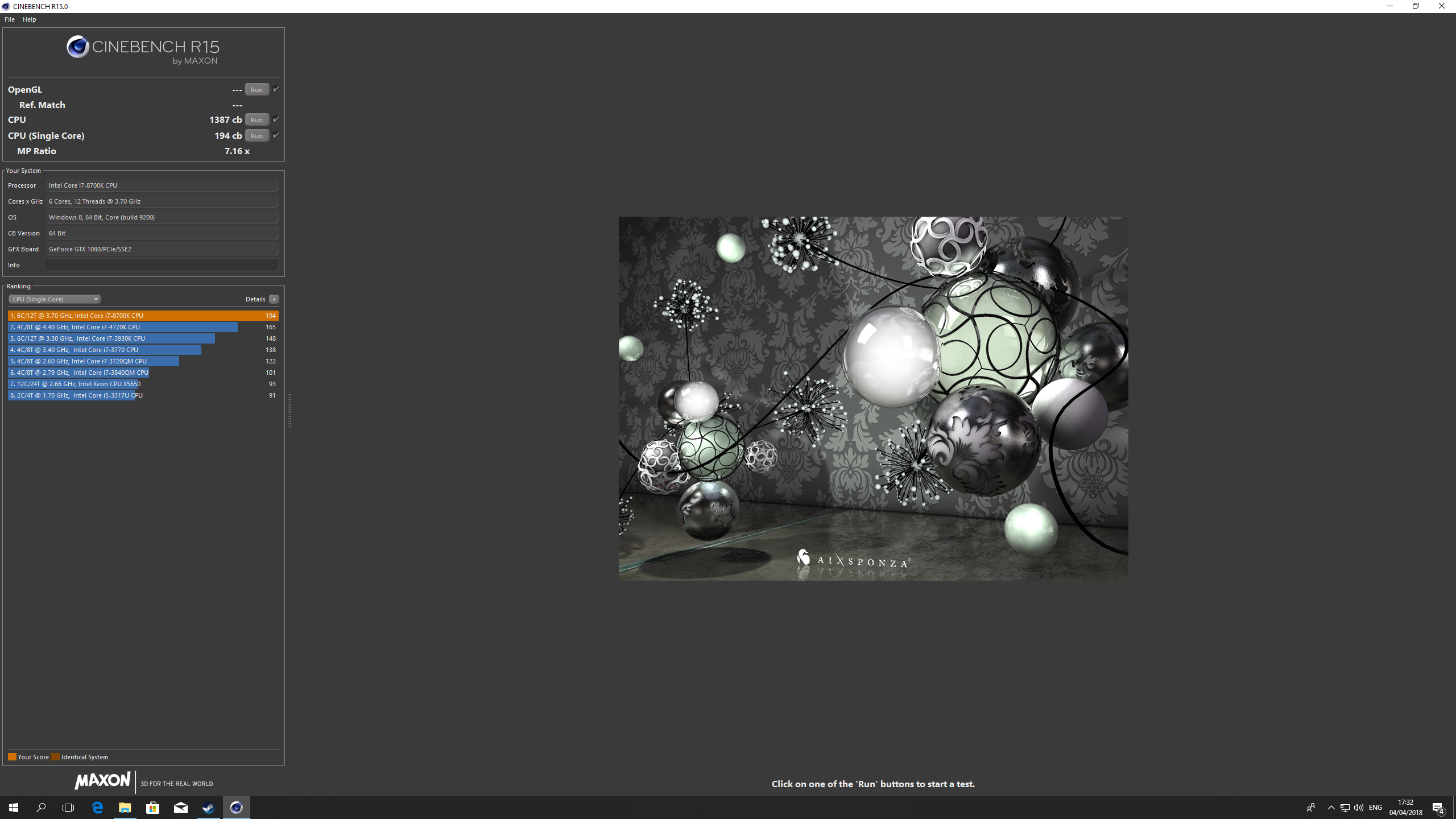 It's clear to see that the Intel Core i7-8700 used here is more than capable of keeping up with the big boys, with the Corsair One Elite's 8700K delivering a mere 2% more performance. The single-core score of 194 is also very nippy, and really highlights just how good Intel's boost clock performance is for single-core use.