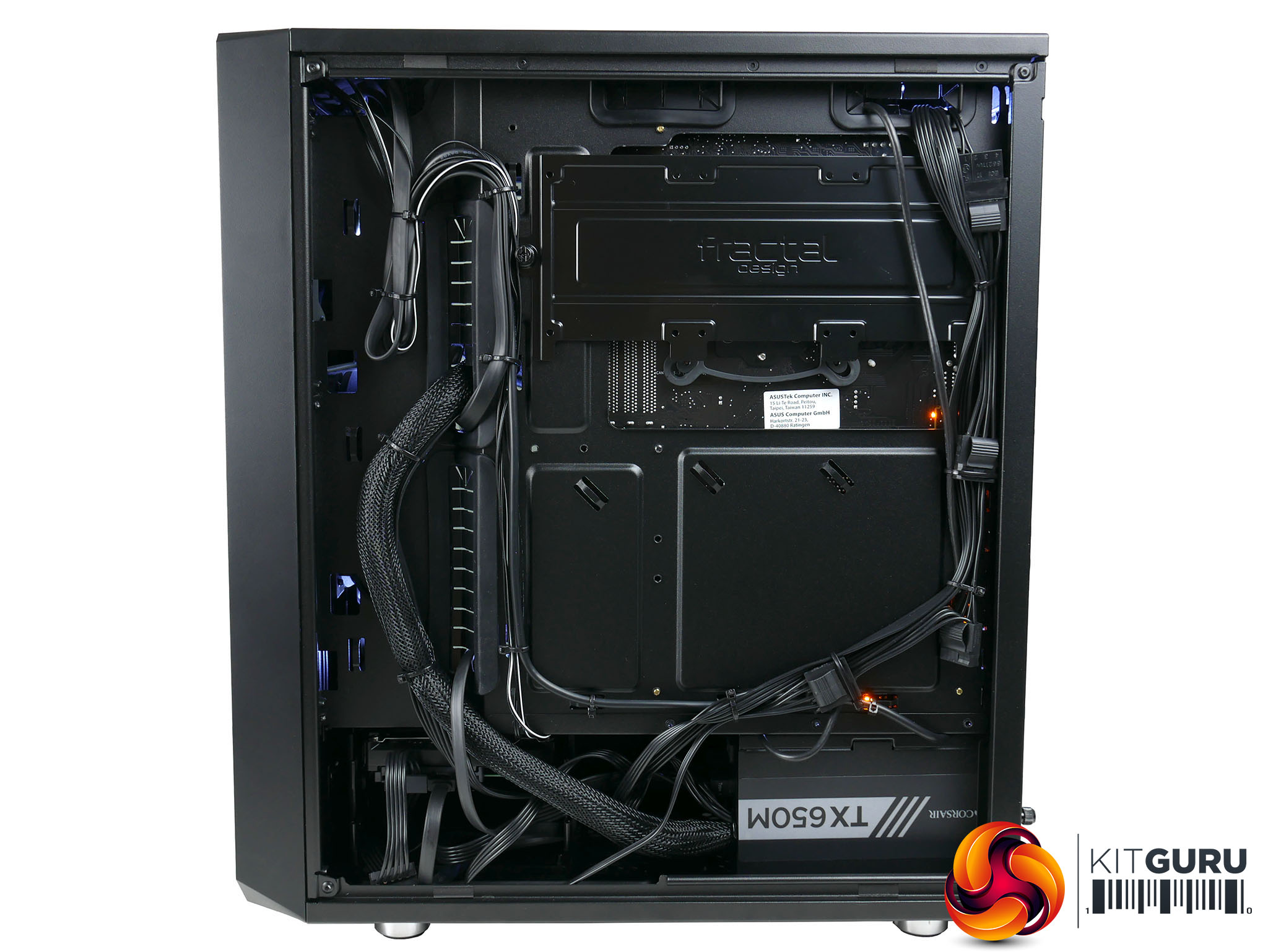 Like most modern cases the Meshify C has a separate chamber for the PSU and hard drives, with space for two 3.5inch drives. SSDs and other 2.5inch drives are mounted behind the motherboard tray.