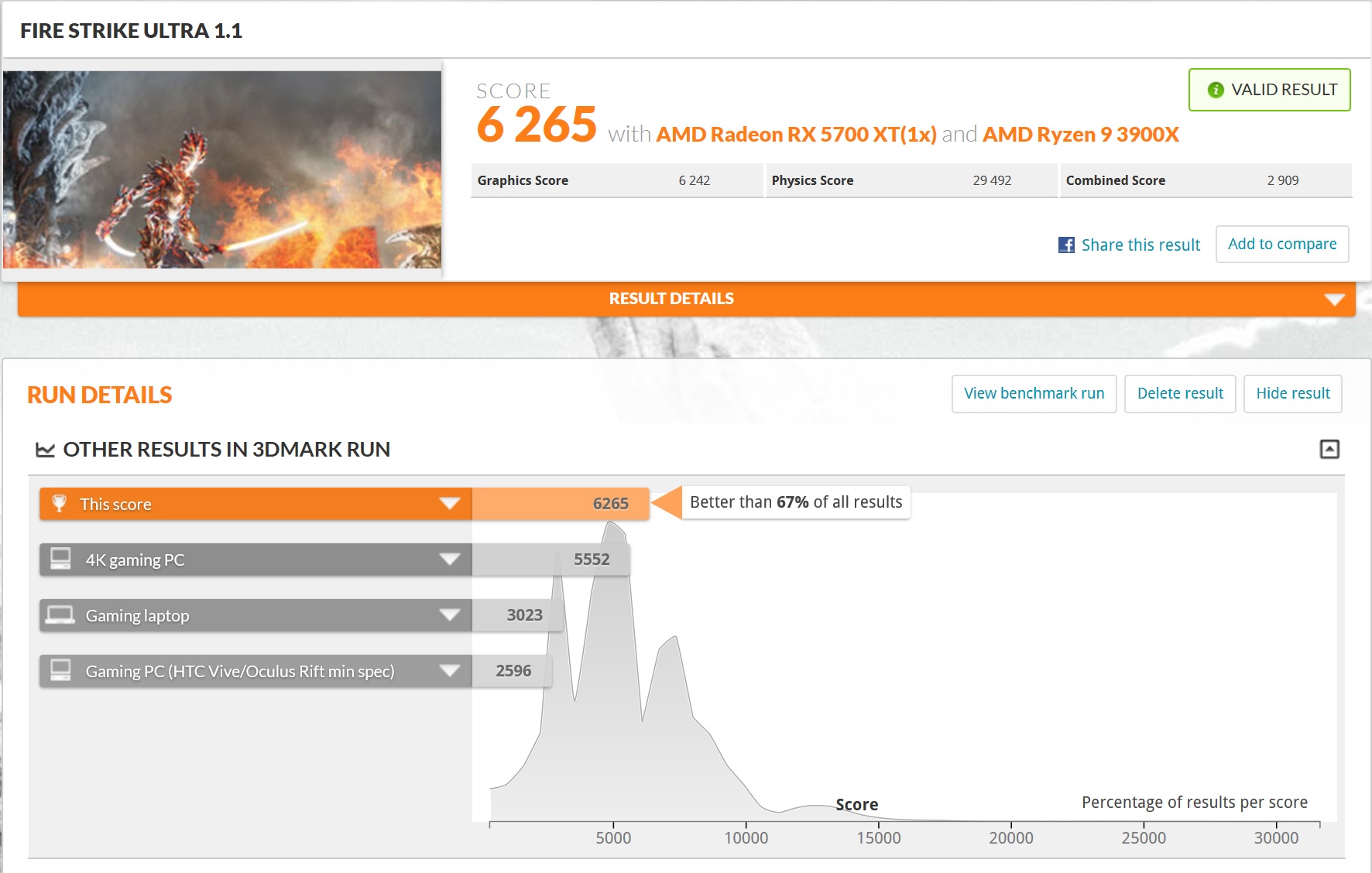 In all three 3DMark tests, the Cyberpower Hydro-X Ultra Gaming system performed very well. In both Time Spy and Fire Strike it achieved results better than over 95% of systems in the database. In Fire Strike Ultra, it still performed well – recording a score better than 67% of other systems tested.