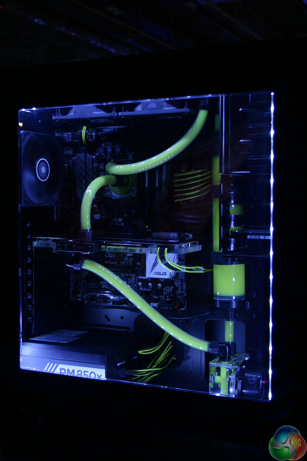 And it is very likely to, since the full systems these two companies had on display were very impressive. The mixture of coloured water cooling liquid with unique LED placements and configurations has a dramatic effect on how cool the systems look. The straight-lined water cooling loops go a long way there too. It's something about the neatness of the lines.