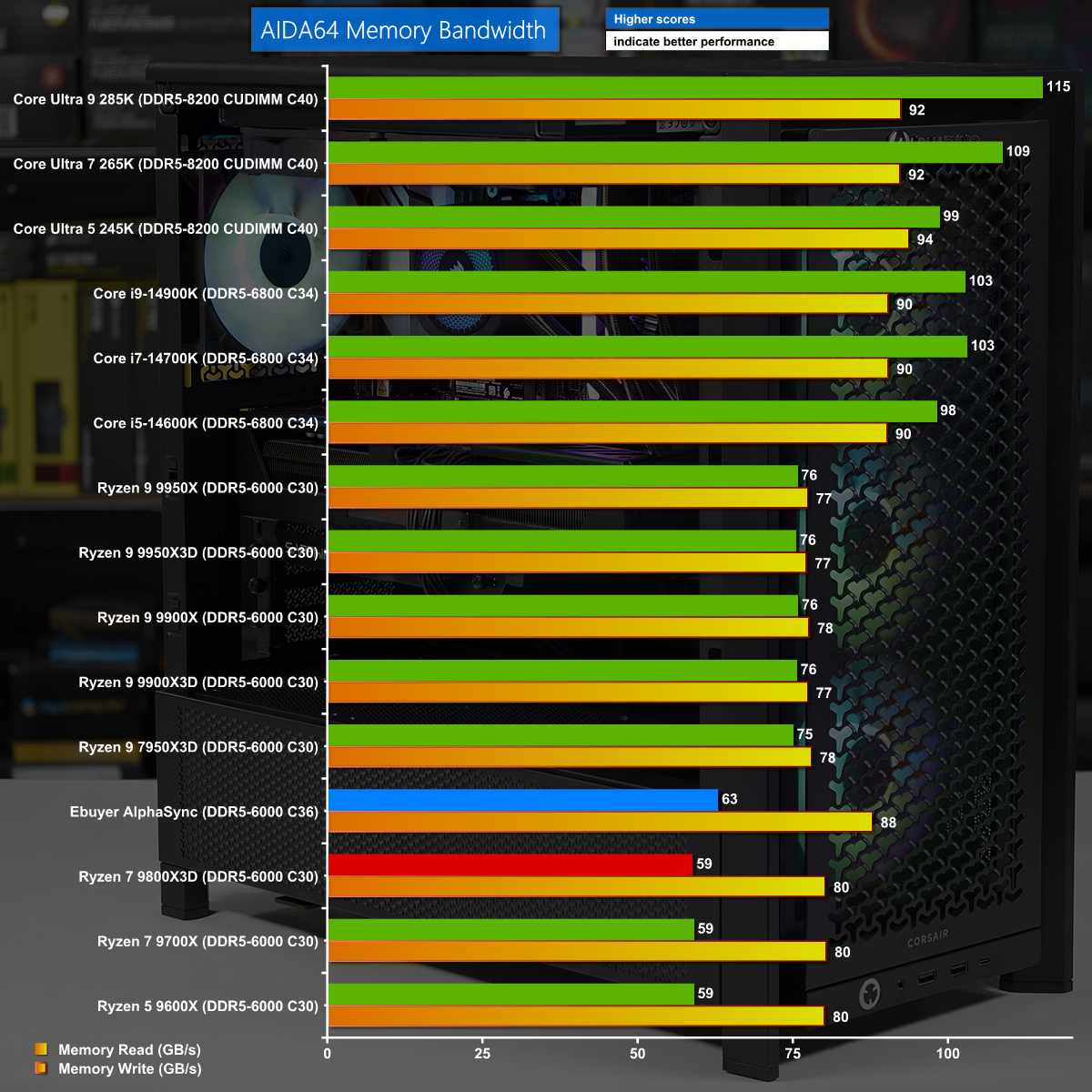 AIDA64 Memory Bandwidth throws up an interesting result as the Corsair Vengeance DDR5-6000 memory kit performs very well.