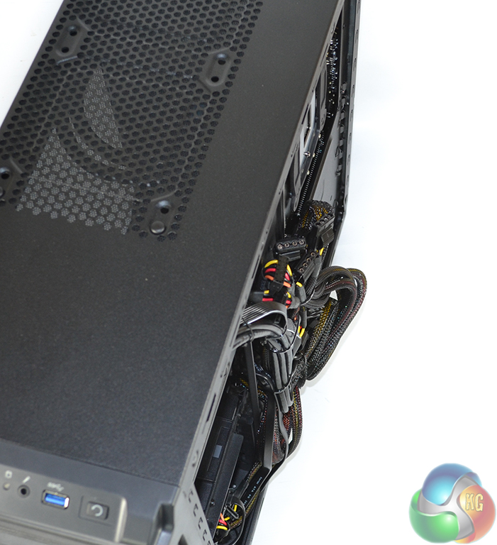 Even with the extruding design, attaching the right side panel requires a great deal of pressure to squash the power cables into position.