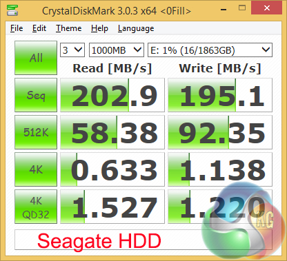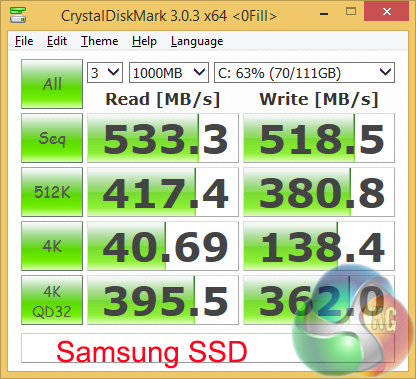 We tested USB 3.0 performance using the Kingston HyperX 3K SSD connected to a SATA 6Gb/s to USB 3.0 adapter powered by an ASMedia ASM1053 controller.