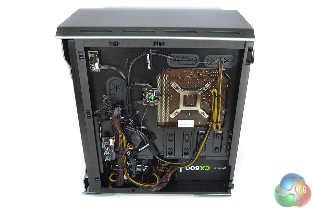 The full-frontal aluminium piece looks good when viewed head-on. Aiming to minimise aesthetic interference on the front panel, Phanteks places the two USB 3.0 ports and audio jacks on the right side panel.