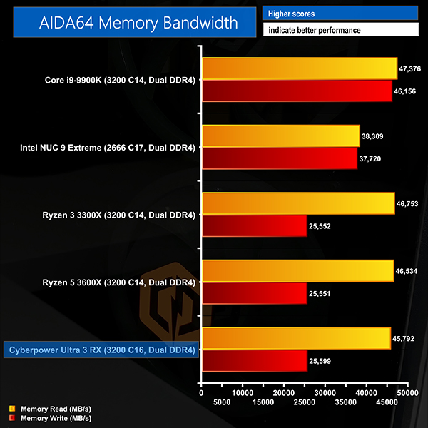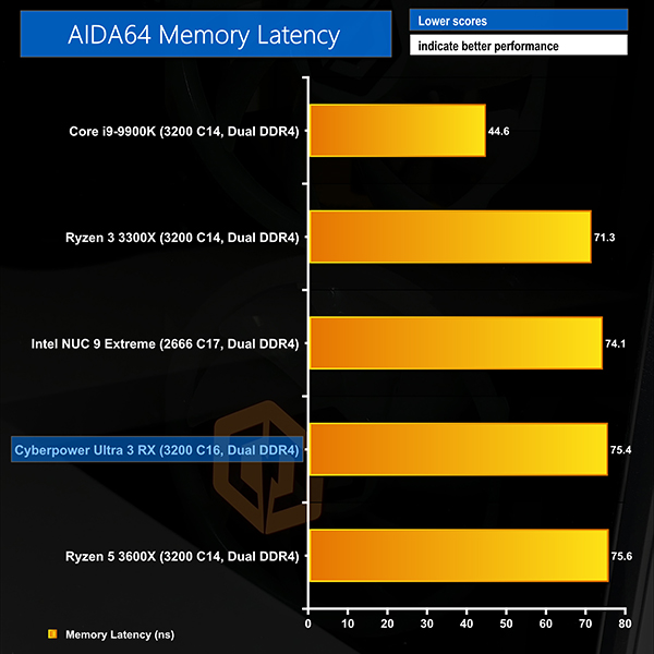 Memory bandwidth is reasonable thanks to the Ryzen 3 CPU, but RAM timings are clearly slack and this affects latency performance, so we will have to see how gaming is influenced. The 3200MHz memory modules used allow for a 1600MHz Infinity Fabric speed.