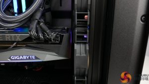 Realistically, though, this is the only mounting orientation that is possible in the NZXT H511 chassis with the RTX 3080 installed. This again references my earlier point of a higher end chassis being more fitting for a build of this calibre. Something a little more premium and with more cooling flexibility, such as the ability to take a roof-mounted 240mm AIO, would have been a better option.
