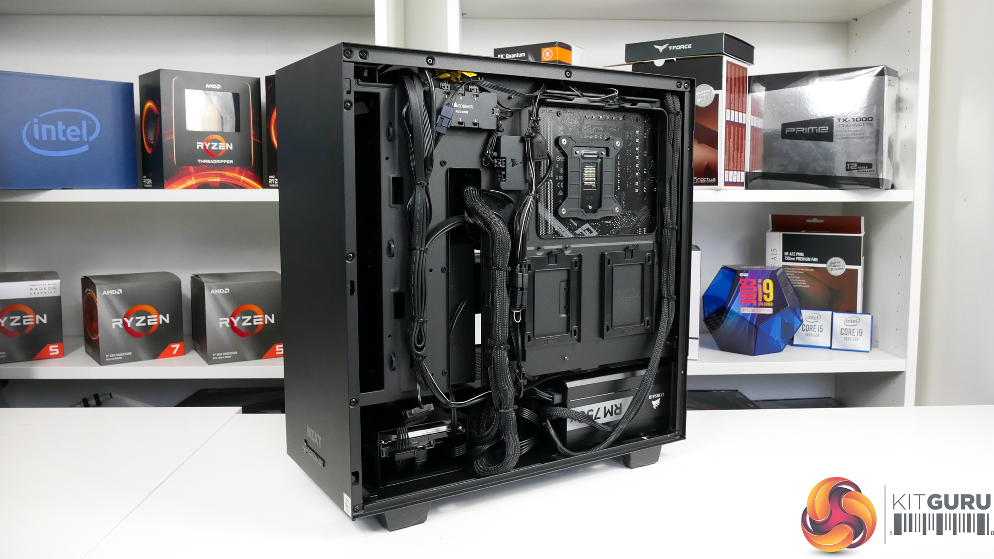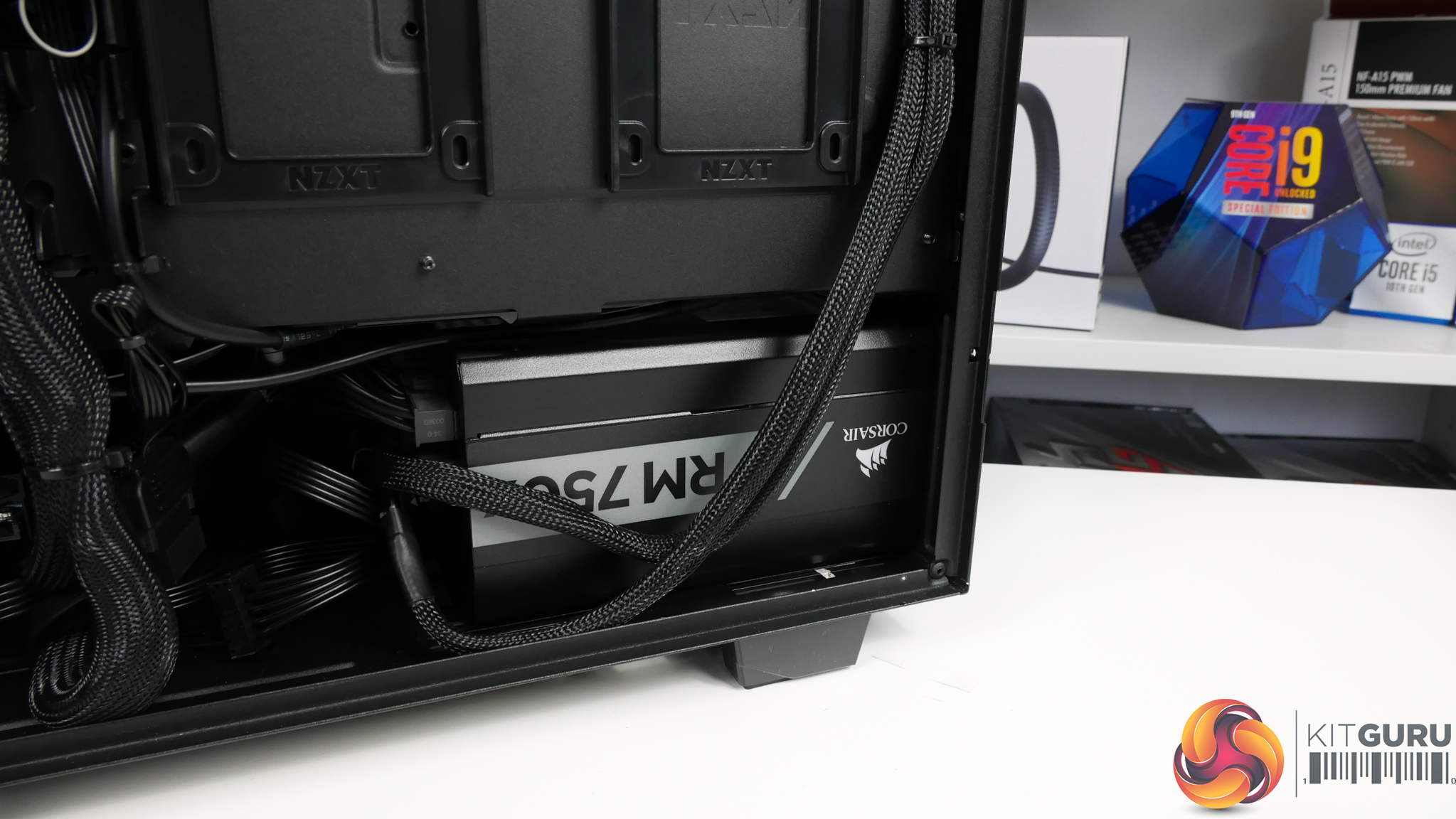 Cable management inside the NZXT chassis is clean, despite the use of the Corsair PSU’s default cables that are not braided or eye-catching. There are a couple of cables on the IO ports at the bottom of the motherboard that deviate from the black shrink-wrap styling, but these are relatively minor points.
