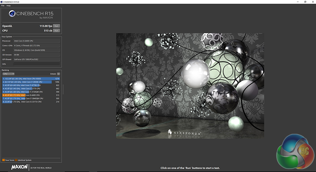 Cinebench primarily puts stress on the CPU. As you can see, the Intel Core i5 6400 isn't setting any performance records but given that this is a gaming machine, rather than a workstation, that shouldn't matter too much. The Core i5 should still be plenty for every day tasks and gaming.