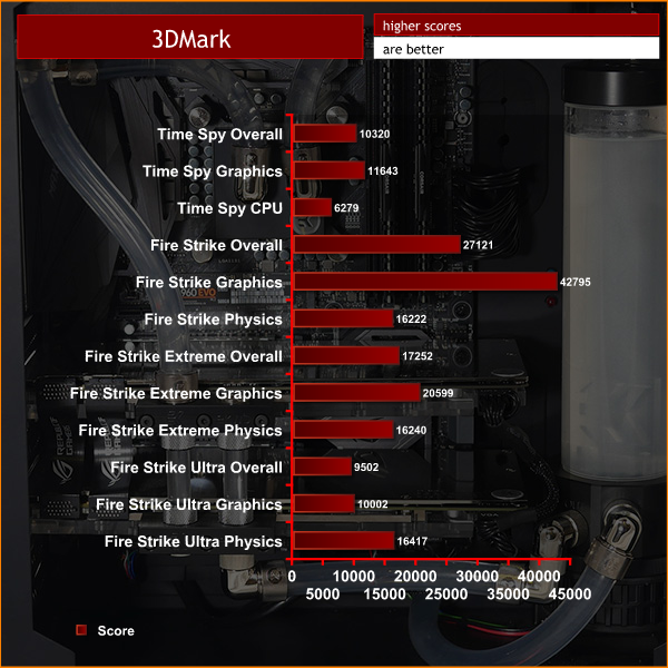 Overclockers has employed high end EKWB cooling hardware that keeps the components icy cold. Under extreme load the CPU hit 61 degrees and the graphics cards were at 43 and 44 degrees. That is cooler than the DinoPC and shows that the Lian Li PC-O8 is able to cool very nicely. It was notable that Overclockers had the fan speeds set to run relatively fast and this undeniably played its part in the excellent cooling.