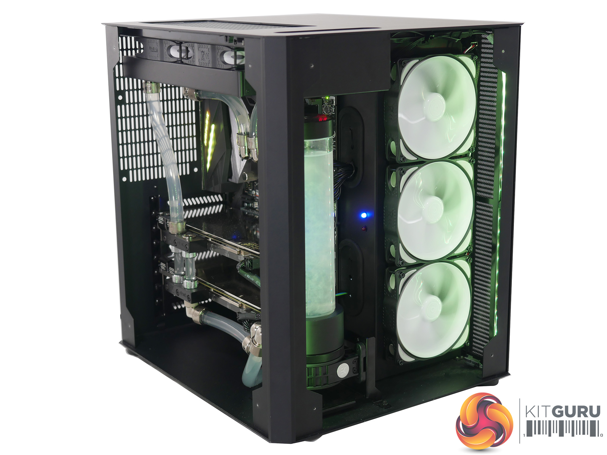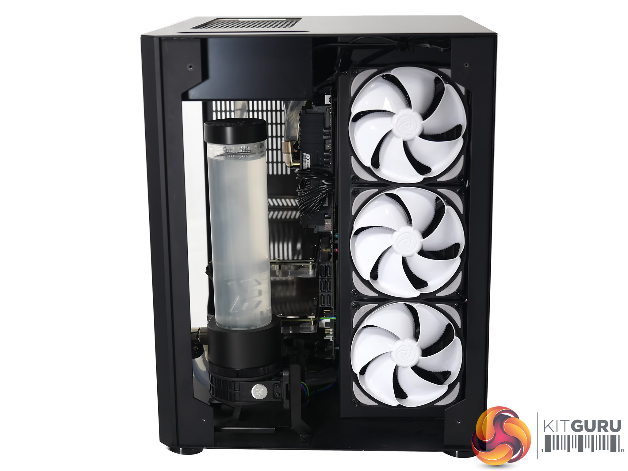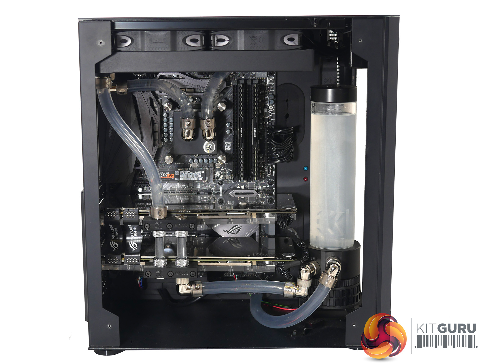 The build quality is superb with an array of EKWB cooling hardware used throughout. The only exception seems to be the use of 120mm Noise Blocker fans rather than the costly EKWB Vardars we might have expected. Positioning the pump/reservoir in the front corner of the glass Lian Li gives an obvious focal point that works superbly well.