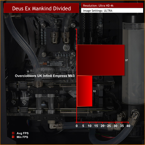 The Overclockers UK Infin8 Empress Mk3 storms along in games and does a fabulous job at 4K, however we would expect nothing less from any decent Core i7 with dual GTX 1080 graphics. The figures matched that DinoPC system almost exactly and the gaming experience was superb. Gaming below 4K on this system would be madness.