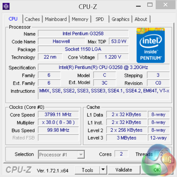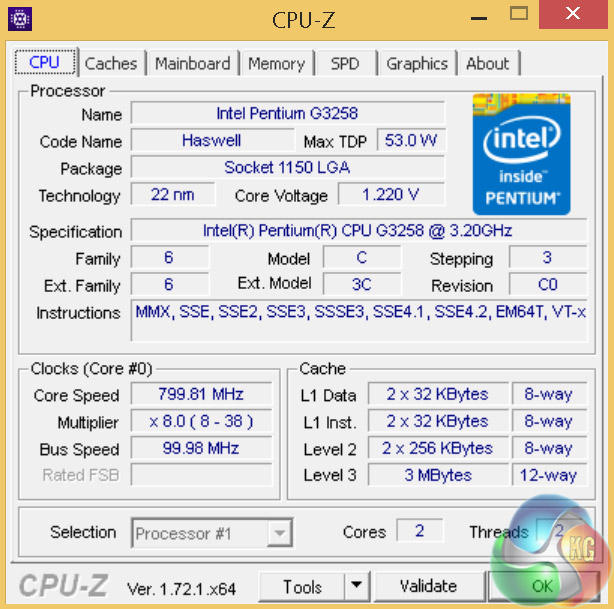 The idling clock speed of the Pentium CPU is a mere 800MHz. To see it in its fully overclocked glory, we need to apply load.
