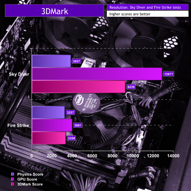 As expected, the Fusion Scythe 2's GTX 750 does struggle with some of the higher end parts of the benchmarks, stuttering its way through the likes of Fire Strike. However despite it being at a relatively cost effective end of the GPU spectrum, it does rather well in the mid-range tests, pointing us in the direction of the sort of game settings this PC will be able to handle.